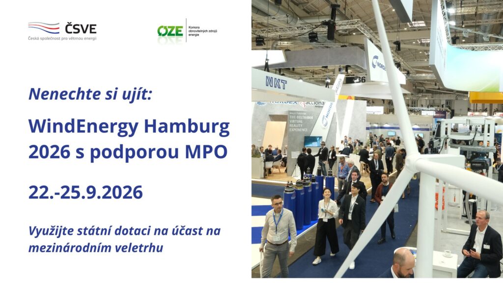 S potěšením oznamujeme, že díky naší iniciativě a iniciativě Komory obnovitelných zdrojů energií byl veletrh WindEnergy Hamburg 2026 zařazen na seznam veletrhů podporovaných Ministerstvem průmyslu a obchodu (MPO). Jedná se o podporu kategorie B – společná expozice.